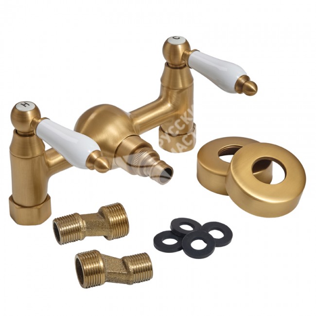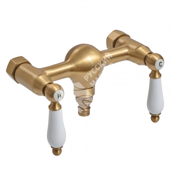 Двухвентильный кран в цвете бронзы — стильный и практичный вариант для бани, сауны и хаммама. Благородное покрытие бронзового цвета подчёркивает интерьер, создавая аккуратный декоративный акцент, а керамические ручки обеспечивают плавное и надёжное управление водой даже при высокой влажности.