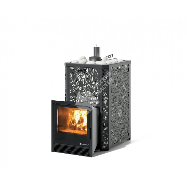Дровяная печь Изистим (EASYSTEAM) Ялта 15 К в облицовке «Хохлома черный»