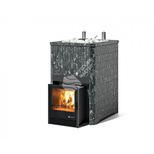 • Дровяная печь Изистим (EASYSTEAM) Домна 45 К в облицовке Пироксенит в наборном кожухе