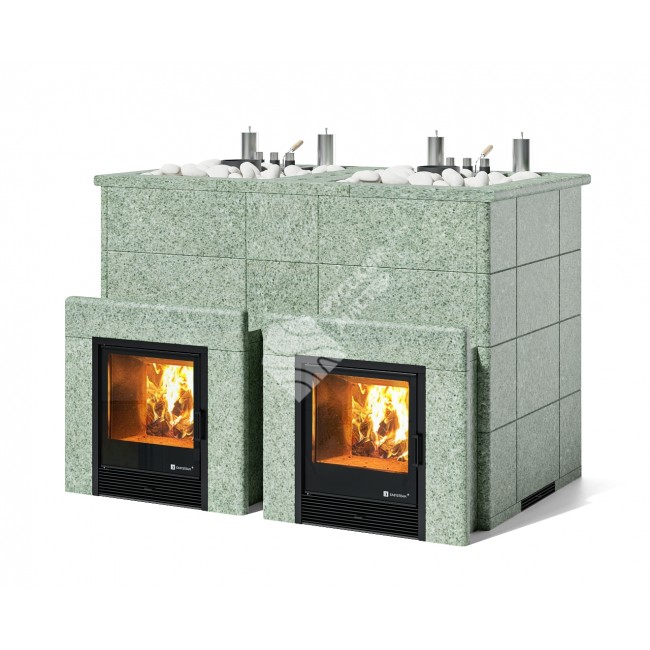 Дровяная печь Изистим (EASYSTEAM) Домна 90 К ТВИН в облицовке Жадеит