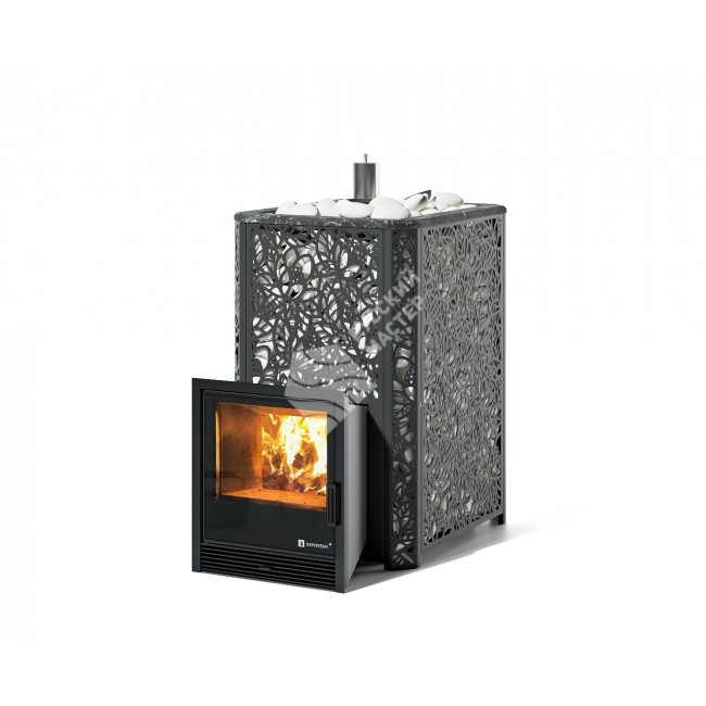 Дровяная печь Изистим (EASYSTEAM) Ялта 35 в облицовке «Хохлома черный»