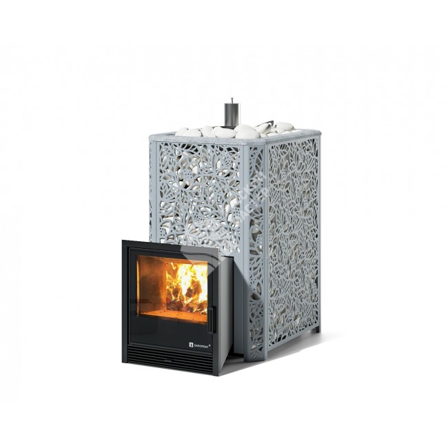 Дровяная печь Изистим (EASYSTEAM) Ялта 35 в облицовке «Хохлома серый»