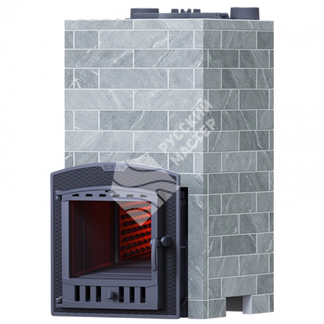 В комплект входит печь Гром 40 (П2), облицовка Классика 1130/40/50 (талькохлорит кирпич), дверца, короб, зольный ящик, герметик и документация.