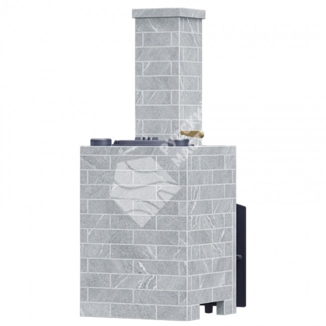 Каменка особой конструкции позволяет быстро прогреть большое количество камня и долго удерживать нужную температуру, создавая мягкий, насыщенный пар. Облицовка Классика 1130/40/50 из талькохлорита в формате «кирпич» не только повышает теплоаккумулирующие свойства, но и придаёт печи выразительный внешний вид.