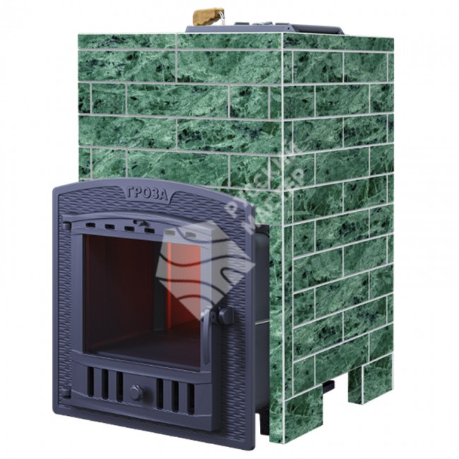 Чугунная печь для бани Техно Лит Гроза 18 (П2) с облицовкой Классика (Змеевик кирпич)