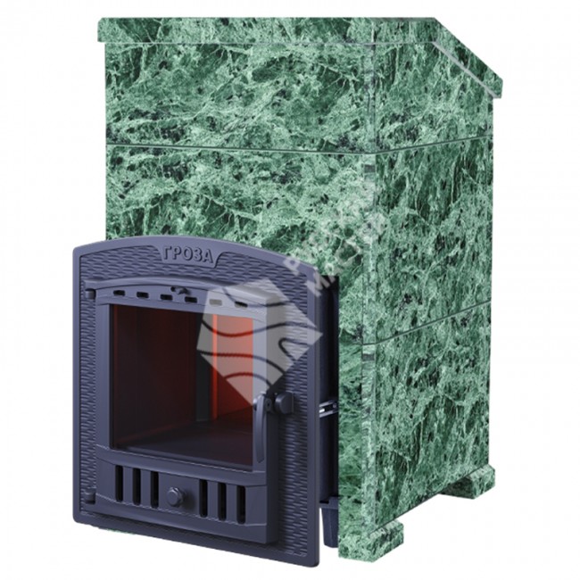 Чугунная печь “Гроза 24 (П2) Президент Змеевик” — надёжная банная печь от завода Техно Лит, рассчитанная на парные объёмом до 24 м³. Она сочетает в себе прочный чугунный корпус и облицовку из природного камня змеевика, известного своей высокой теплоёмкостью и красивым глубоким рисунком.