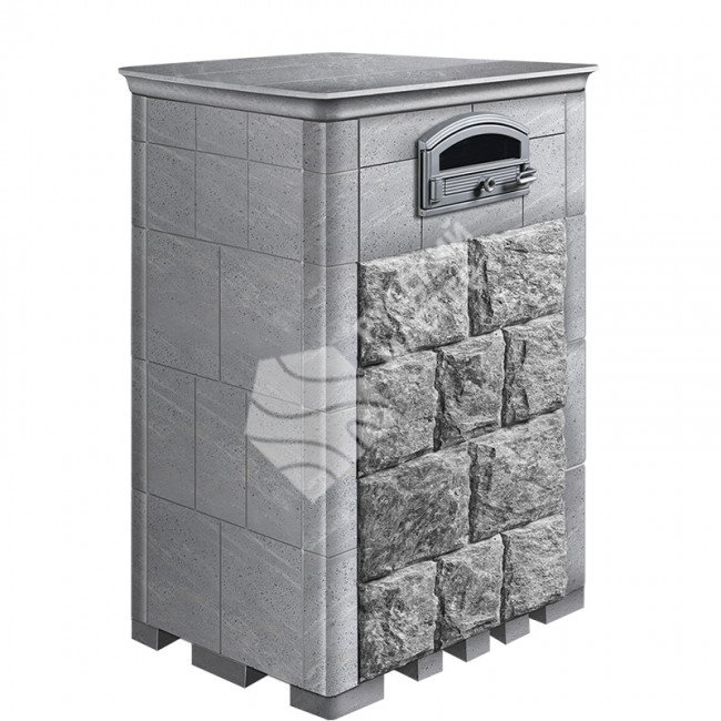 В облицовке используется натуральный талькомагнезит Tulikivi, обладающий высокой теплоемкостью. Толщина каменных плит — 60 мм, что гарантирует надежность и равномерную теплоотдачу. Печь аккумулирует энергию и долго сохраняет полезное инфракрасное тепло, наполняя парную комфортом и уютом.