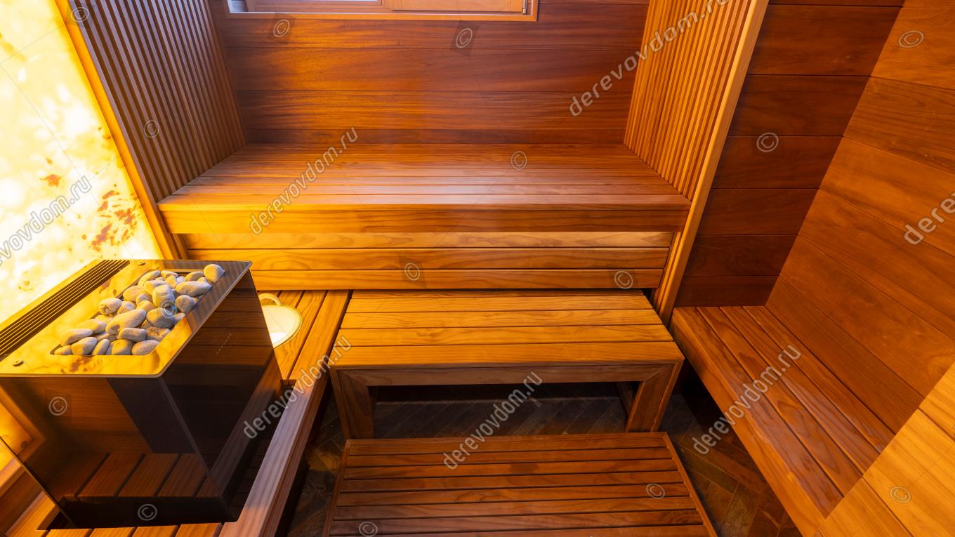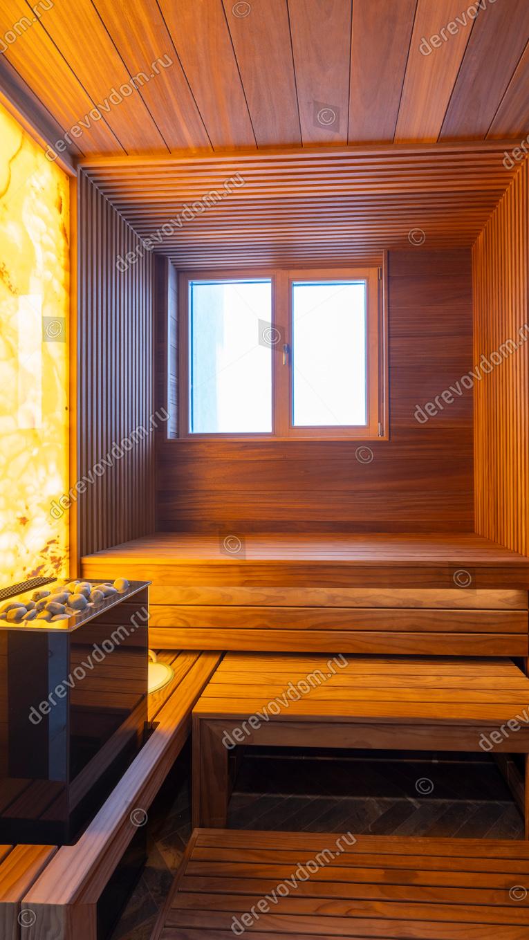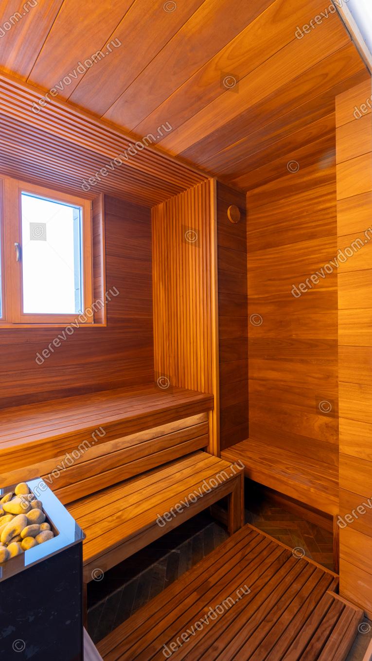 Компактная и в то же время роскошная сауна с выверенной эргономикой — индивидуальный проект, реализованный нами «под ключ».