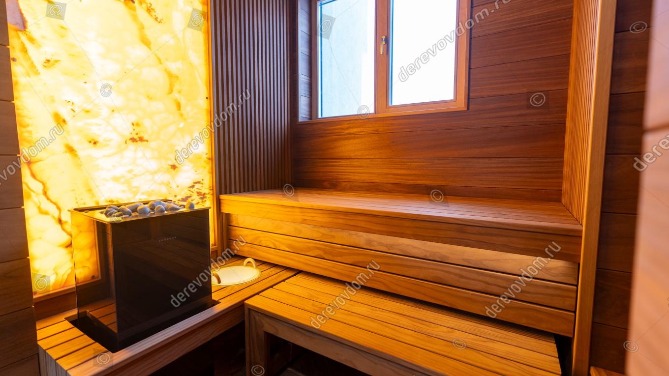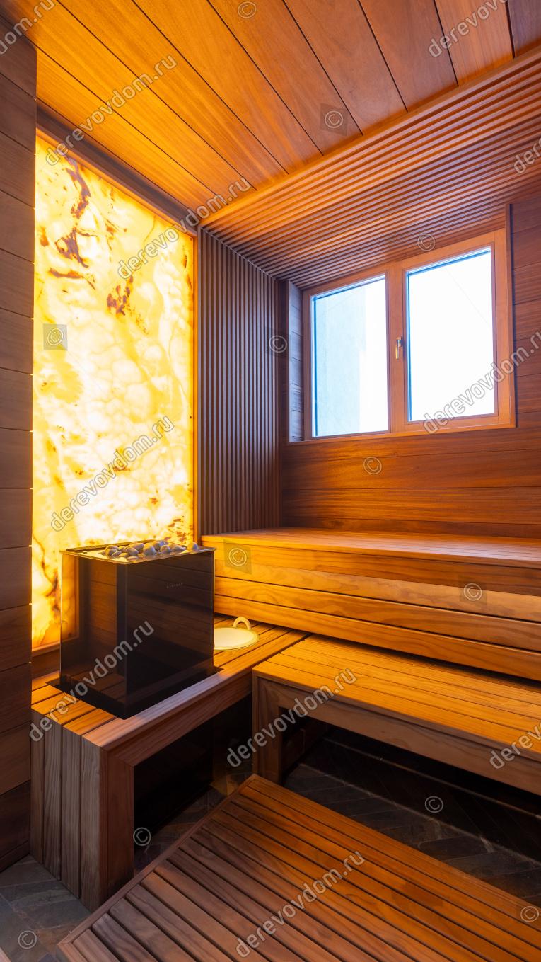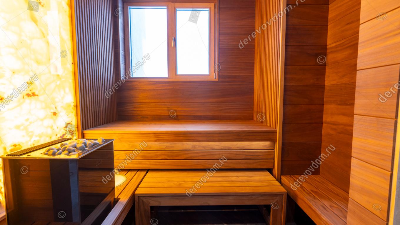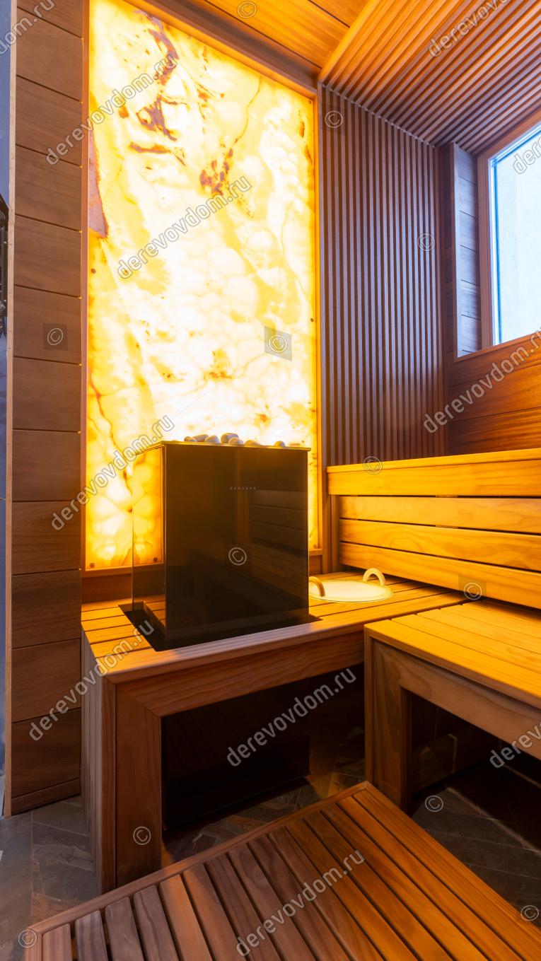 Компактная и в то же время роскошная сауна с выверенной эргономикой — индивидуальный проект, реализованный нами «под ключ».