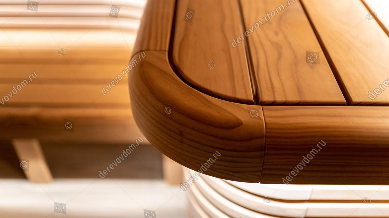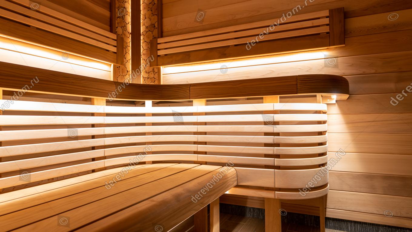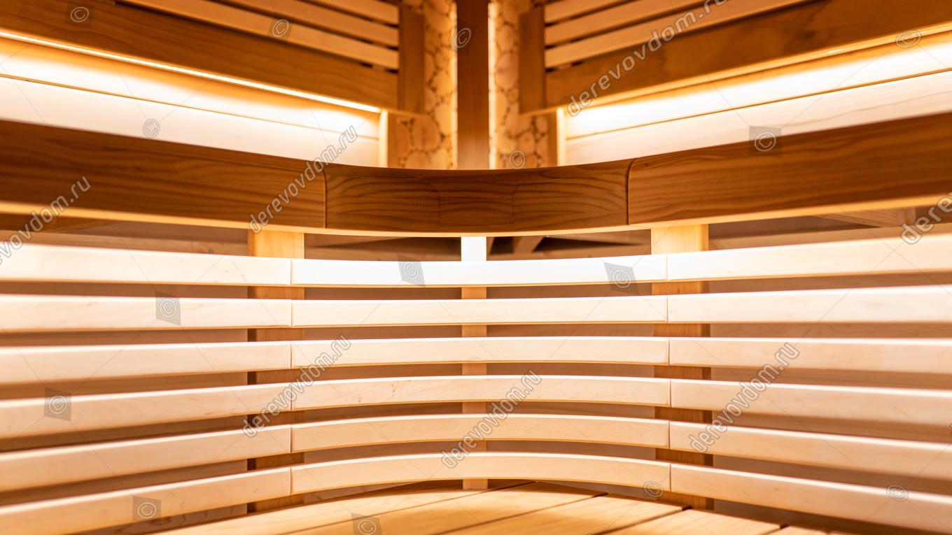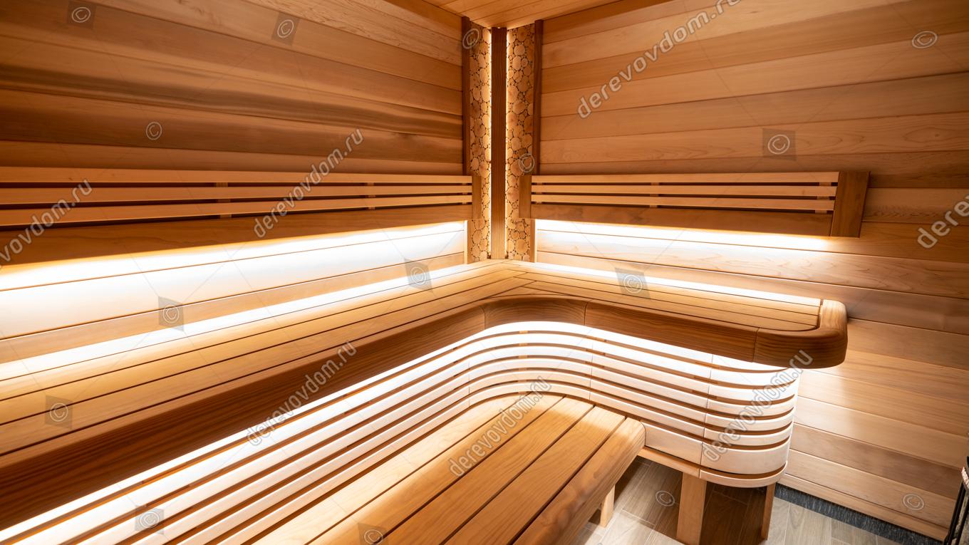Эксклюзивные изогнутые элементы в парилке «под ключ»! Компания «Русский Мастер» изготавливает изогнутые элементы для сауны и бани из различных пород древесины. В данном проекте использованы дуги и торцевые планки из новозеландской термососны Pino Premio, а также закругленные элементы из ольхи.
