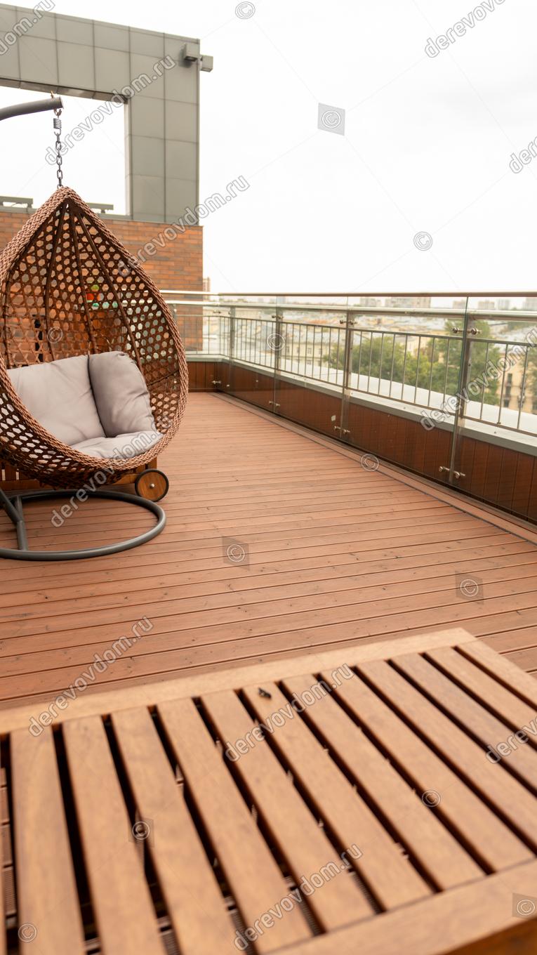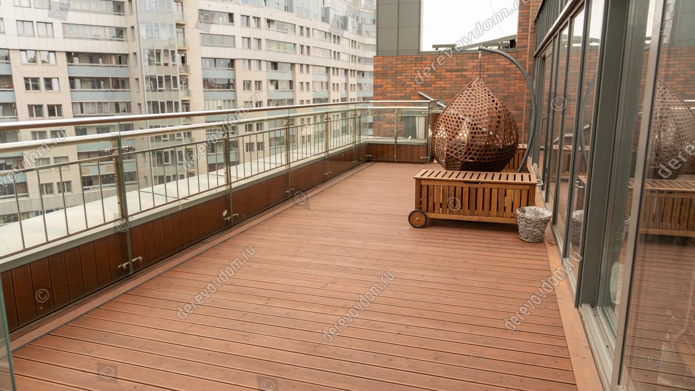 Терраса на балконе в городской квартире — индивидуальный проект, реализованный нами от идеи до воплощения, «под ключ». Как обустроить террасу в многоэтажном доме? Проект безусловно будет отличаться по своим техническим решениям от террас в загородных домах, коттеджах и беседках. Основная сложность проектирования и монтажа таких террас — то, что ниже расположены другие жилые помещения. Т.е. необходимо создать гидроизоляцию, выполнить разуклонку для водоотведения, использовать соответствующие материалы.