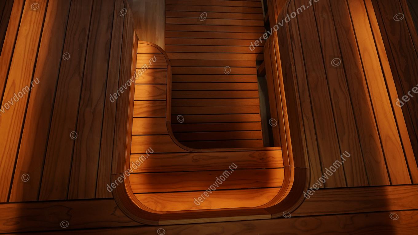 Парная оснащена изогнутыми полками, которые придают ей особый шарм и удобство. Они выполнены из той же термососны и идеально вписываются в общий дизайн помещения. Сердце сауны — финская печь IKI на дровах. Она обеспечивает быстрый и равномерный прогрев парной, создавая идеальные условия для отдыха и релаксации. Этот проект сауны является отличным выбором для тех, кто ценит качество, комфорт и стиль. Он станет прекрасным местом для отдыха и оздоровления, где можно забыть о повседневных заботах и насладиться атмосферой тепла и уюта.