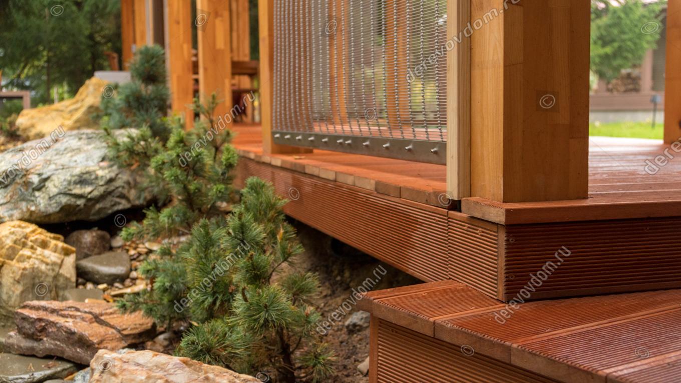 Уютная терраса из красного бангкирая: красота и практичность. Мы рады поделиться с вами фотографиями одной из наших работ — уютной террасы, выполненной из красного бангкирая. Эта древесина широко используется в Европе и Северной Америке для декоративной отделки, благодаря своей уникальной текстуре и устойчивости к воде и грибкам.