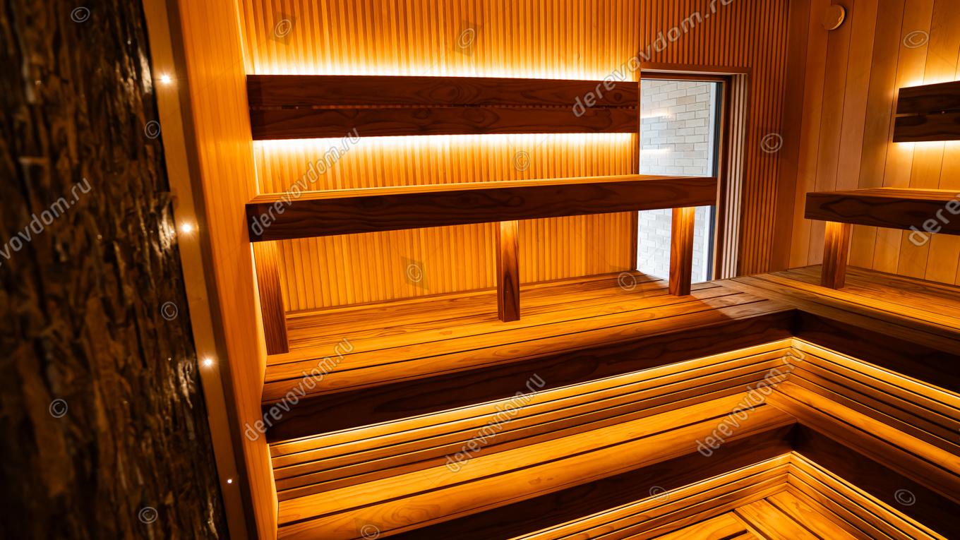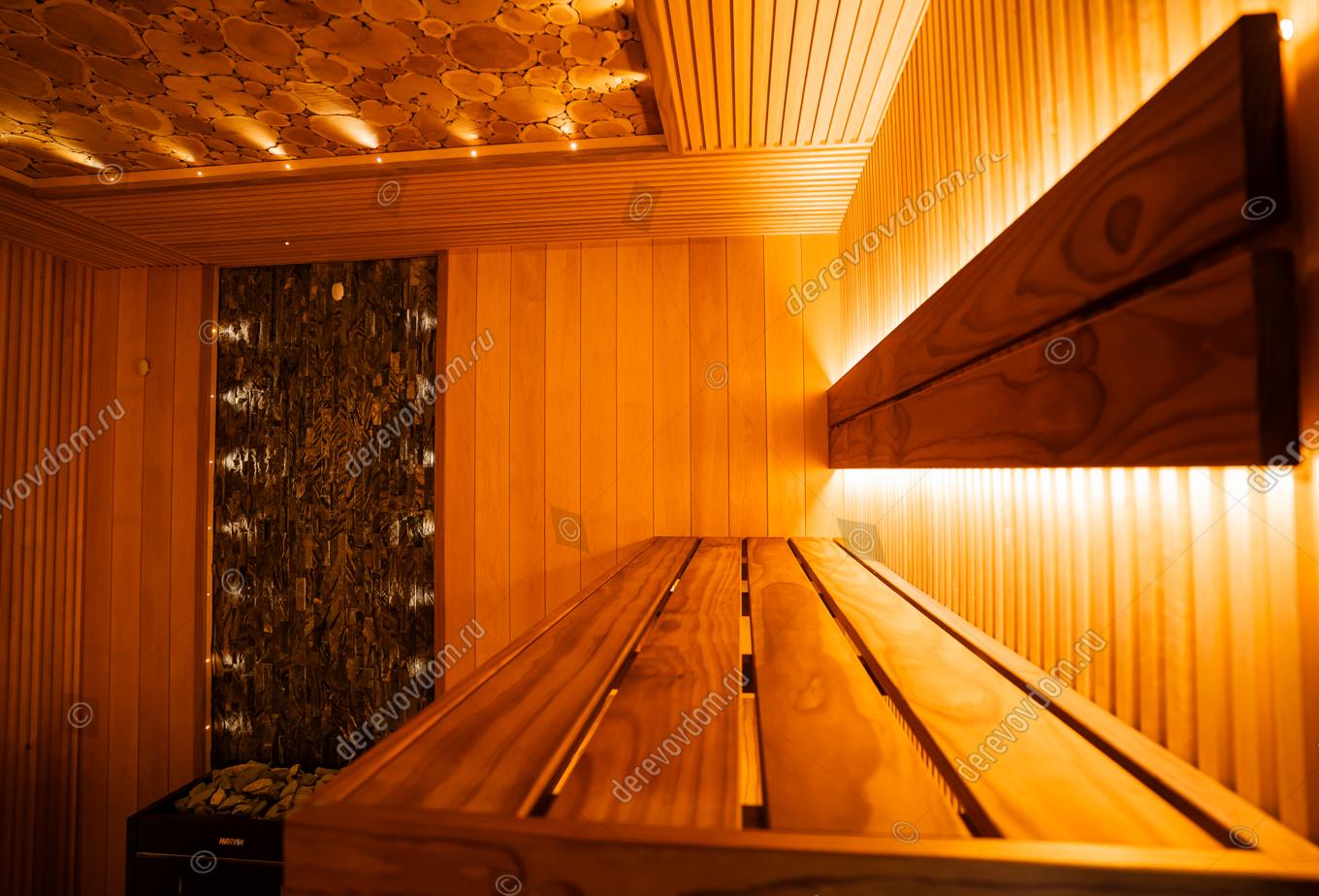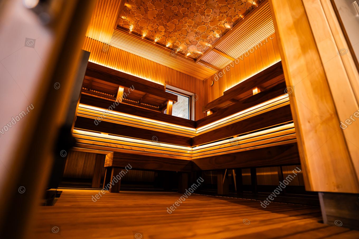 Сауна с высоким потолком и четырёхъярусными полками в Москве — эргономика и хороший пар в помещении, которое изначально не задумывалось как парная. По-настоящему качественная и особенная баня складывается из мелочей, и начинать её строительство следует с создания проекта. Здесь много интересного и нестандартного: например, парная имеет высокие потолки (2,9 м) и многоуровневые полки, что позволяет комфортно париться даже при такой высоте.