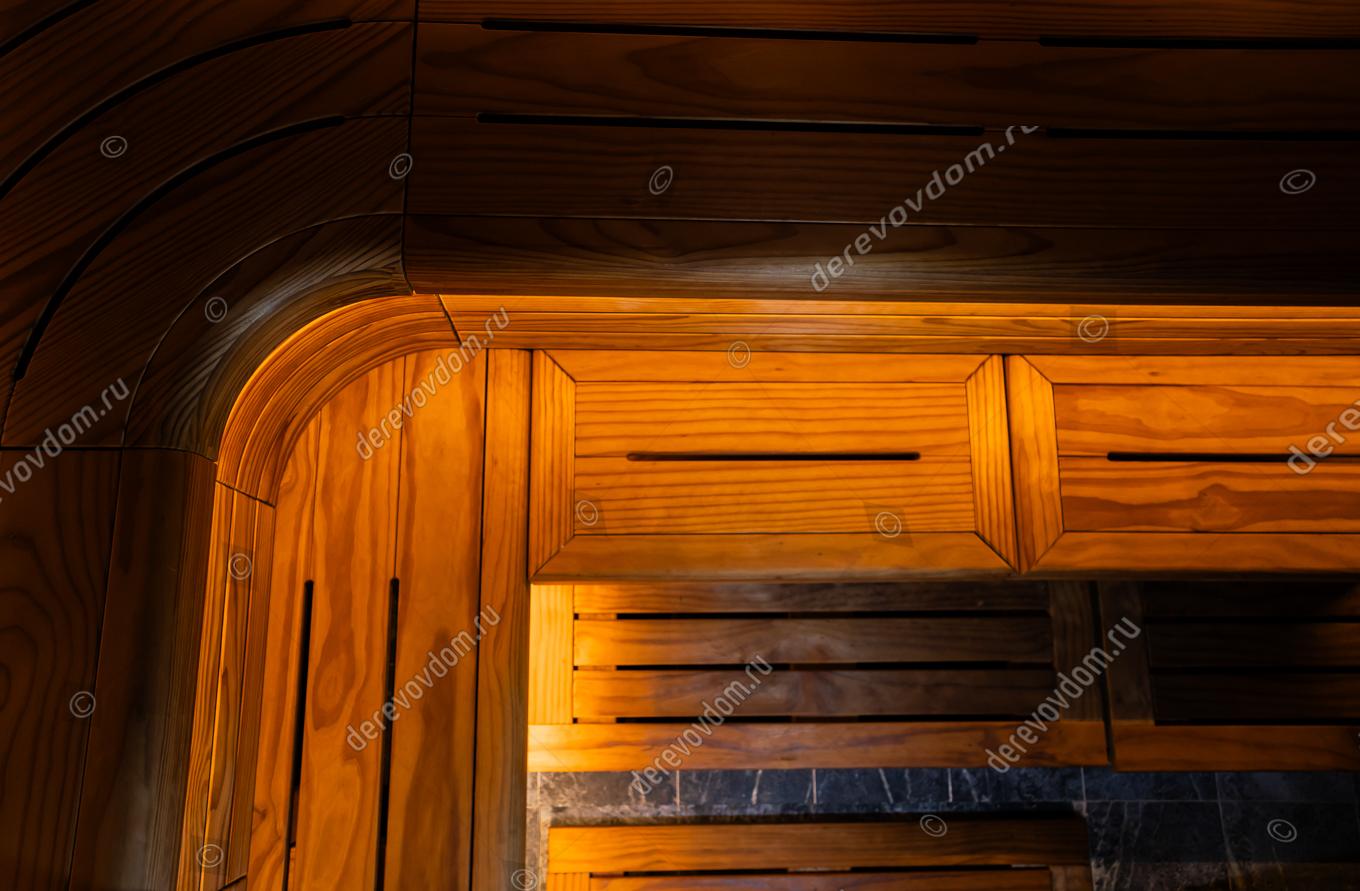 Эргономичные 3D-полки гарантируют максимальный комфорт во время парения. Они изготавливаются нами на собственном производстве по индивидуальным размерам. Материал – новозеландская сосна Pino Premio. Материал имеет благородный темный цвет, красивые декоративные годовые кольца и стабильную геометрию. Полное отсутствие сучков, смолы, необычные профиль, мебельная влажность 5%, - все это ставит продукты Pino Premio вне конкуренции для изготовления 3D-полков и других банных элементов.