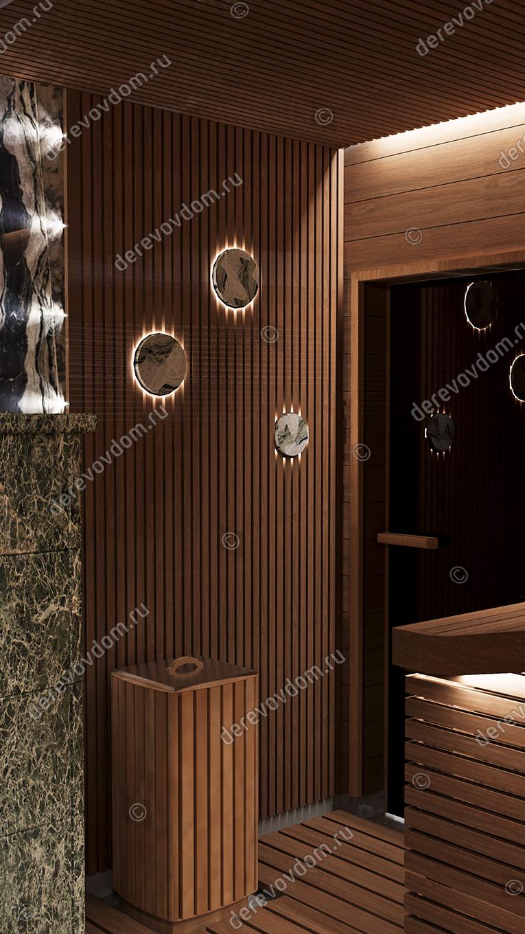 Также в этом проекте: Панно из гималайской соли с подсветкой. Оно не только эффектно смотрится, но и благотворно влияет на организм человека благодаря уникальным свойствам соли вулканического происхождения. Панно из можжевельника. Можжевельник обеззараживает воздух в парной, делает его чистым и целебным. Запах успокаивает нервную систему. При нагревании, древесина выделяет эфирные масла и фитонциды. Автономный электрический веникозапарник. Он предназначен для одновременного запаривания 1-4 веников и хранения их в рабочем состоянии в течение всего сеанса парения.