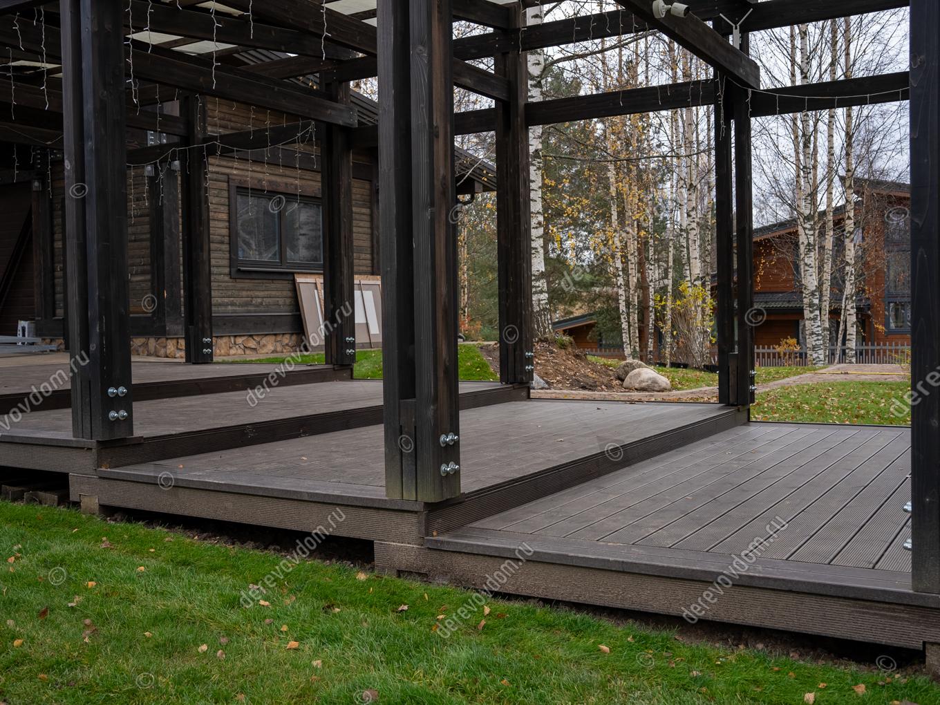 Террасы и настилы из массива — наш конёк. Мы создали уникальное пространство для отдыха, учитывая все особенности участка и пожелания заказчика. Вечером терраса превращается в уютное место, где можно наслаждаться видом на сад или просто отдыхать после рабочего дня. Удобные ступени позволяют легко подниматься на террасу и спускаться с неё. Здесь можно разместить удобные сиденья, шезлонги или небольшой диван. Большие горшки с цветами создают атмосферу уюта и комфорта. Элегантности добавляют перголы и навесы, которые защищают от солнца и дождя. Многоуровневое основание идеально подходит под рельеф участка.
