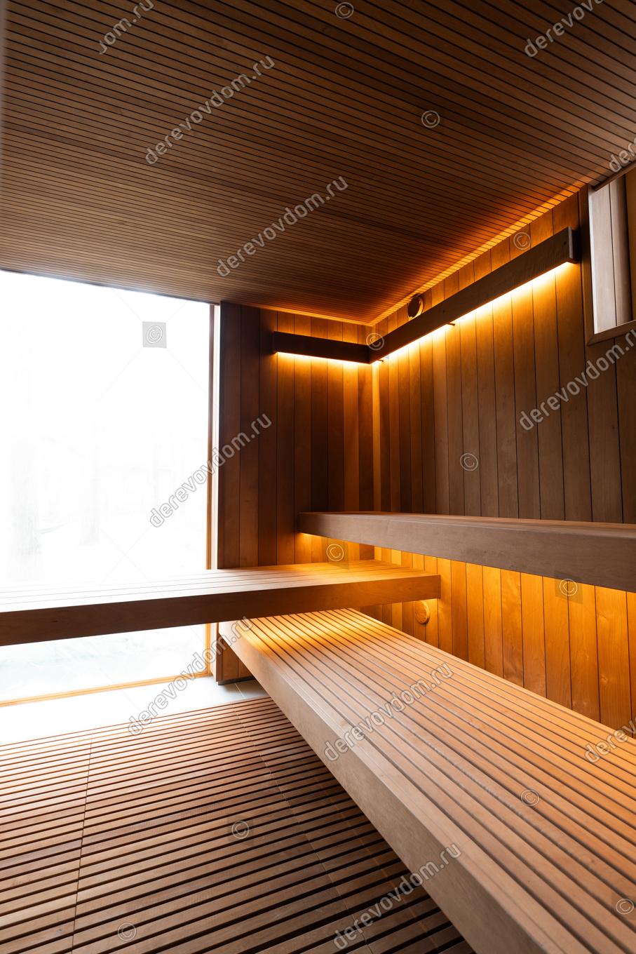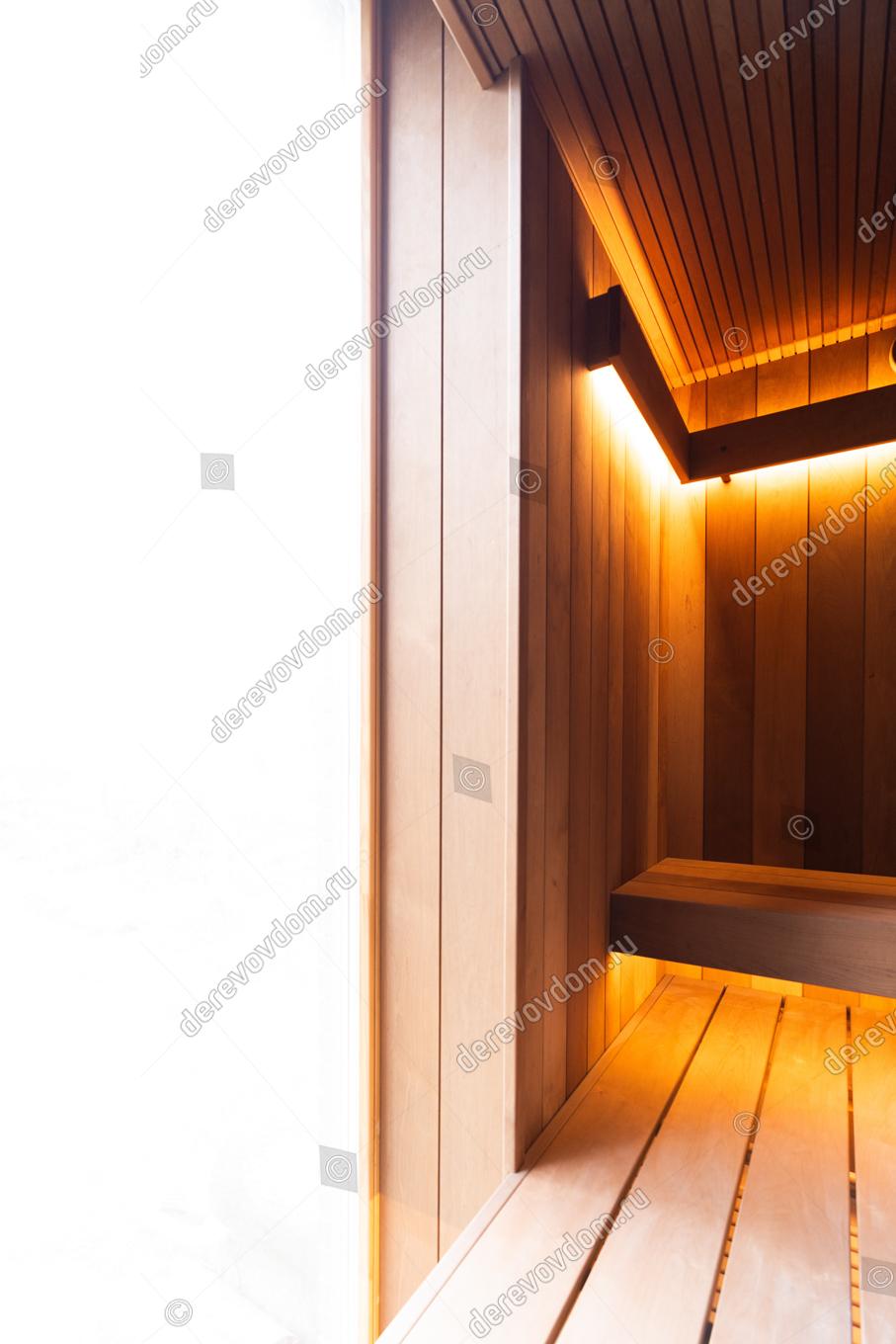 Линейная подсветка тёплых тонов создаёт световые акценты под полками и в специальных линейных светильниках под потолком. Это не просто освещение, а сценарий релакса, позволяющий настроиться на правильный медитативный лад.