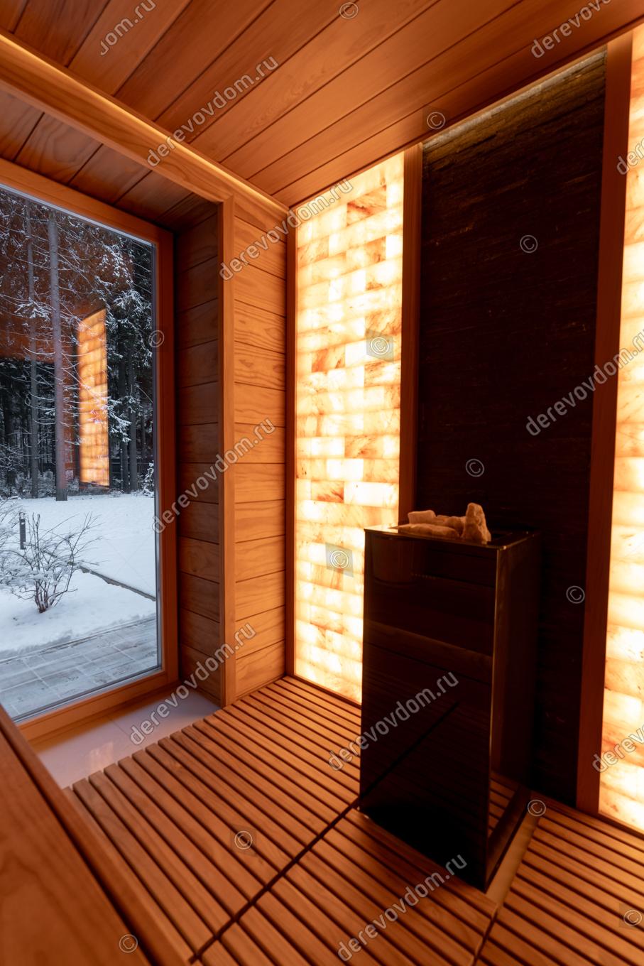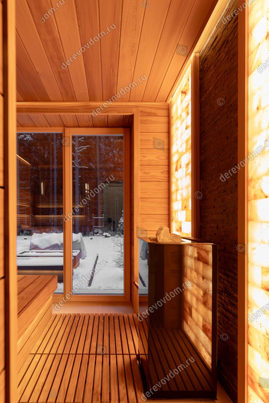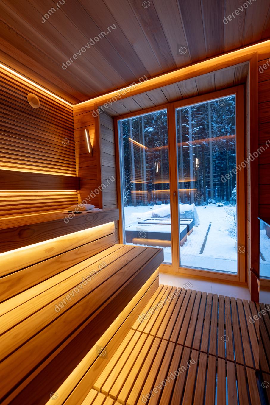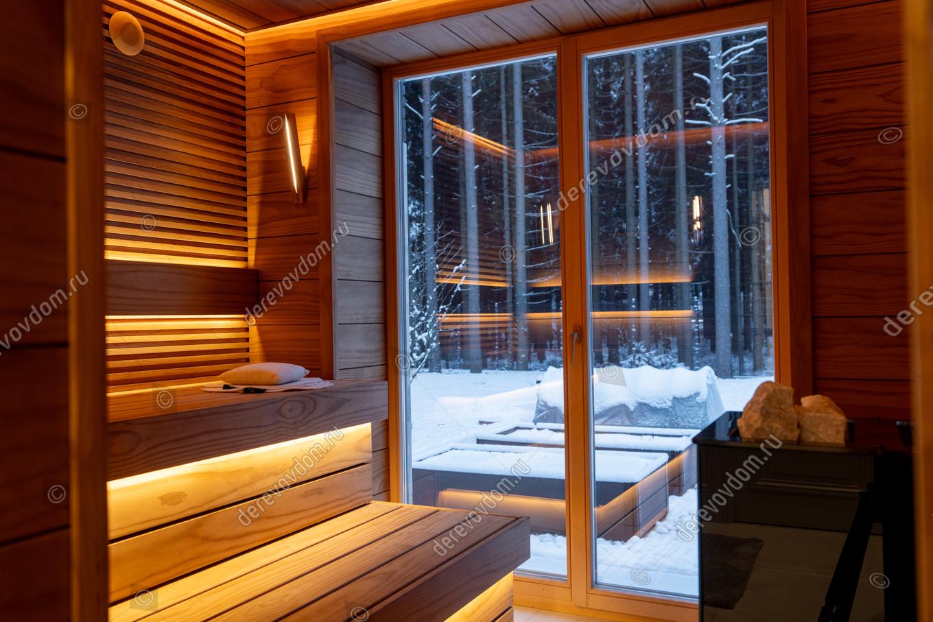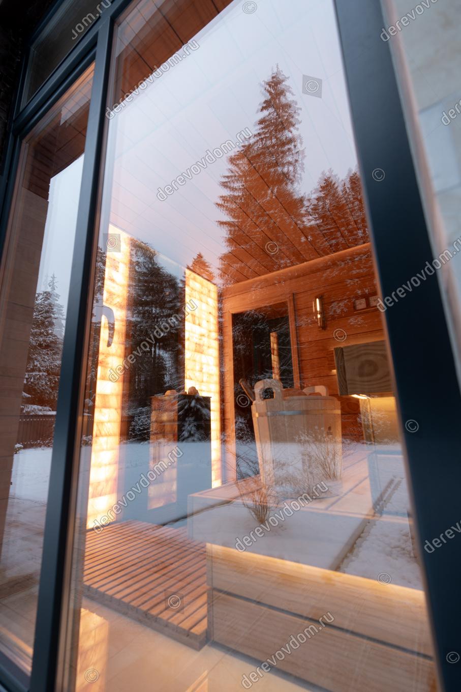 Эта частная парная стала воплощением мечты о идеальном месте для релаксации, где границы между интерьером и природой мягко растворяются. Панорамное остекление создает постоянный диалог с окружающим ландшафтом, позволяя наслаждаться сменой времен года и природными пейзажами прямо во время банных процедур.