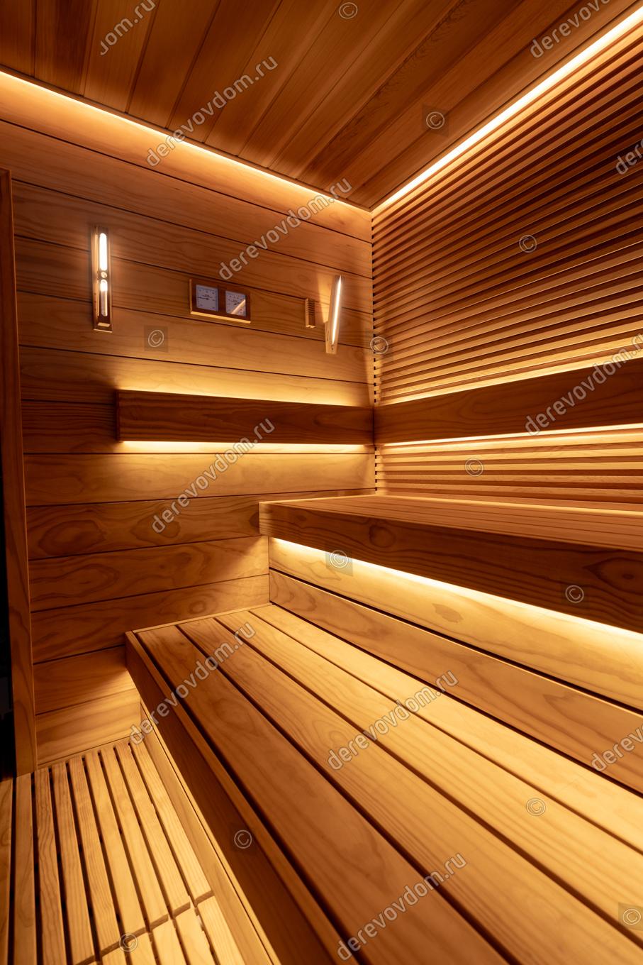 Ароматы новозеландской термососны и канадского кедра дополняют оздоровительный эффект, наполняя пространство целебными фитонцидами. Этот натуральный дуэт пород древесины создает гармоничную атмосферу для глубокого расслабления, где можно полностью отрешиться от городской суеты.